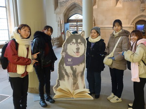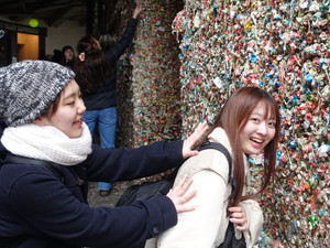 先日とは代わり、楽しいショッピングデイ! キムの運転でシアトルに行きました。まずはワシントン大学に行き、建物内を見学しました。とても古くて、図書館がハリーポッターの学校のようで素敵でした。次に橋の下にいるトロールに会いに行きました。写真をとったらシアトルのスカイツリー、スペースニードルに行きました。展望台まで登れるのかと思いきや、一階のお土産コーナーで買い物をしてモノレールに乗り次のスポットへ。ジョニーロケッツというハンバーガーショップで、ハンバーガーをシェアして食べました。その後、歩いてパイクプレイスマーケットに行きました。お土産屋さんでお揃いのTシャツを買い、スタバ1号店へ。混んでいるため、入りたい人だけ入店。アリッサが言うには本当の1号店はもうなくなったらしく、ビジネス初号店らしい。