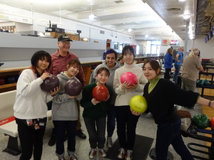 をシェアして食べました。もうお気づきかもしれませんが、アメリカの料理はシェアじゃなきゃ食べきれません。シェアしても多いくらいです。私はとてもお腹いっぱいになりました。次に私たちはボウリング場に行き、ボウリングをしました。私はなかなかいいスコアが出なかったため、仲間の妨害をして楽しんでいました。しかしそんな私にも一度だけストライクを出すことができました。