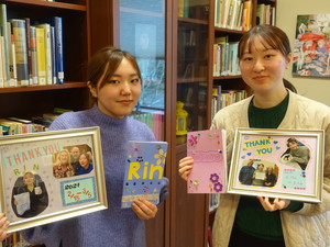 をもらいました。私のには手作りの毛糸の入れ物に犬のシールと靴下が入っていました。その後ホストファミリーにサンキュージャーナルを渡して、ケーキを食べました。