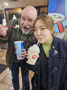 を注文してくれました。私は初めて食べましたが、エビよりもプリプリしててとてもおいしかったです。食後にバニラシェイクが飲みたいと行ったら、たくさんの種類があるシェイク屋さんに連れて行ってくれました。私がバニラが良いといったら、「バニラは平凡すぎてつまらないからやめなさい」と言われましたが、私は完全にバニラの口だったのでバニラを注文しました。おいしかったです。