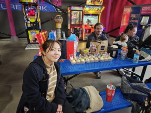 お昼になると別の孫の誕生日パーティーに行きました。マイクは二日酔いで調子が悪かったので、メロディと二人で行きました。室内アトラクションパークの休憩スペースでカップケーキを並べ、一つもらいました。その後メロディとスーパーに行きました。私はメロディが家で使っていたドリンクボトルが欲しくて、色違いを買いました。