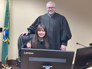 へ行きました。職員の方に案内してもらいながら市役所内を回りました。市長、裁判官、警察副署長に、用意してきた質問をしました。みなさん私たちが聞き取りやすいようにゆっくりと話してくださいました。だいたいは理解できましたが、難しい単語がたくさんで、話が難しかったです。かっこいい警察官の方々と写真を撮ったり、市長や裁判官のオフィスを見せてもらったりなど、とても貴重な体験ができました。