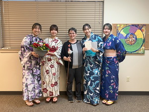 クラフトを完成させました。最後のプレゼンの練習をして夕方にはみんなでピザを食べました。浴衣を着て、いよいよさよならパーティー 。お世話になった Nutt 家と Stone