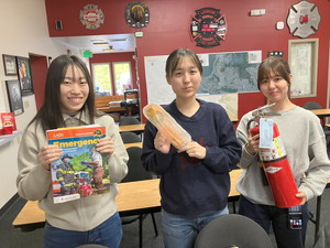 強風の影響で朝から家中の電力が落ち、スマートフォンを充電することができませんでした。そこで持っていたモバイルバッテリーが役に立ちました。午後から消防署に行き、消防士に質問をしたり、防火服を着て放水体験