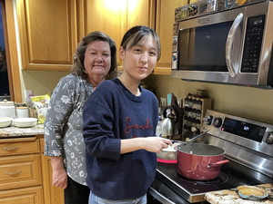 夜はウェルカムパーティーが開かれました。みんなのホストファミリーとゲームをしたり、持ち寄ったご飯を食べたりしました。少し緊張していましたが、分かりやすい英語で話してくれたので、楽しい時間を過ごすことができました。