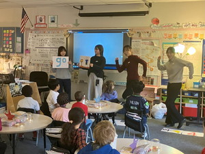 からアメリカの安全性について教えてもらいました。ものを盗まれそうになったときの身の守り方を、実演して勉強しました。財布を盗まれそうになって襲われたときは、しゃがんで、"No!!!"