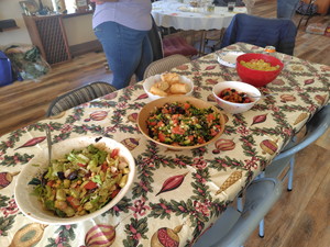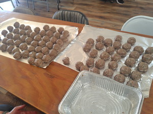 の友人の家にミートボールを作りに行く約束をしていたそうなので、私も一緒に行きました。何人かで協力して作ったので500個ほどのミートボールができました。お昼はそのお肉でハンバーグを作ってもらい、バイキング形式でサラダも食べました。John