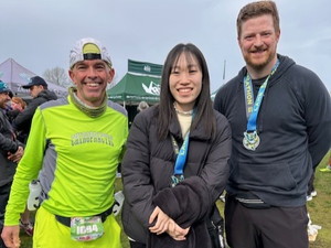 は友人と一緒に走り、見事完走していました。完走した人にはメダルが渡されましたが、John は私にメダルをかけてくれました。John