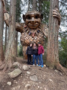がトロールを探しに行くことを提案してくれました。森の中まで探しに行くと、かわいいトロールを発見しました。私たちの他にもトロールを探している人がたくさんいました。この日は寒かったのですが、トロールを見つけることができてよかったです。