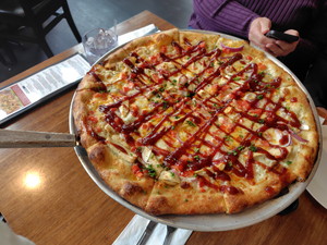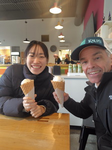 お昼は、私がずっと食べたいと言っていたピザのお店に連れて行ってもらいました。アメリカンサイズなのでとても大きかったです。バーベキューチキン味のピザを食べましたが、前日に食べたブリトーと同じく、食べ切れなかった分は家に持ち帰って食べました。寒い日でしたが、ピザを食べた後にアイスクリーム屋にも行きました。とてもかわいらしいデザインの店で素敵でした。アイスクリームにはいろいろなフレーバーがあって悩みましたが、クッキー&クリームにしました。今までで一番思い出に残る時間を過ごせました。