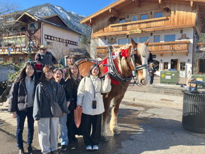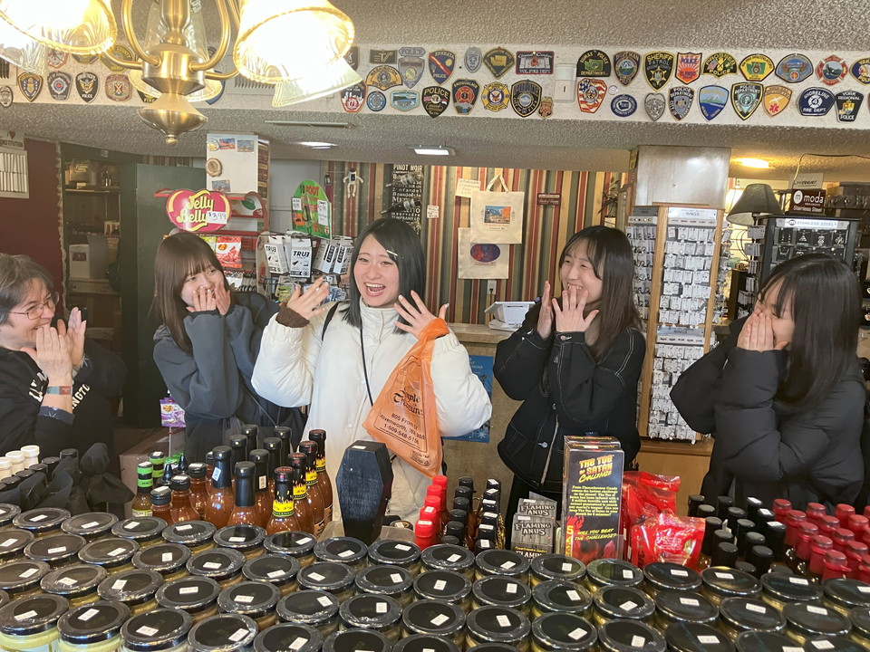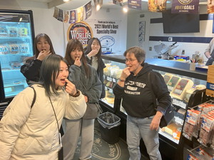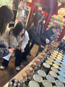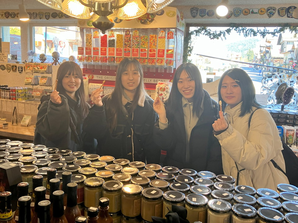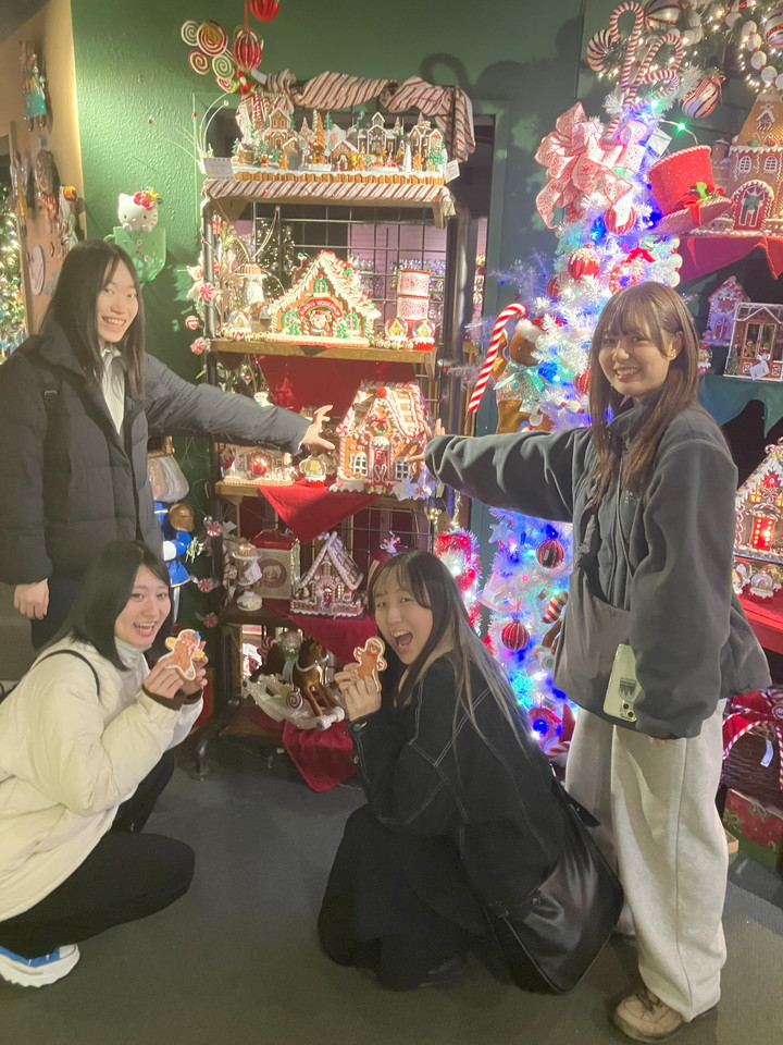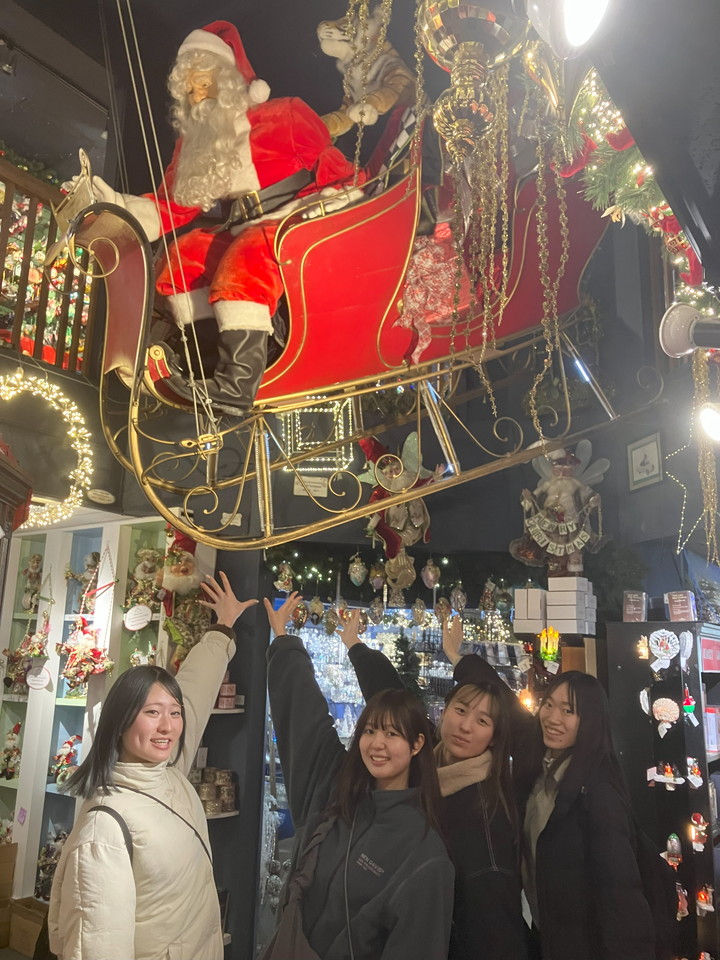 After driving for almost three hours, we were about to reach the village. Just before that, we stopped by a local glass factory. The glass products were very beautiful. We finally reached the village, where we saw many German style buildings and charming shops. We had lunch at McDonald's and spent the rest of the time exploring and shopping at some interesting stores, including a Christmas shop, a funny hat shop, a candy store, and many more. We bought some souvenirs for ourselves and our families in Japan.