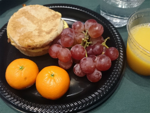 オリエンテーション期間中は朝が早いので、カフェテリアで朝食が提供されます。覚えることが多く大変ですが、友達をつくる良い機会です。積極的に話しかけましょう。 |