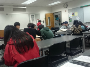 スピーキングでは決められたお題の プレゼンテーションやディスカッション、正しい発音の仕方について勉強しました。プレゼンテーションは個別にする事もあれば、グループになってする事もありました。 リスニングでは、大学の講義を聴いてノートを取り 、その内容についてのテストがありました。毎週金曜日には、他のクラスと合同で「モダンファミリー」というドラマを見て、内容に沿った問題をグループで話し合います。 |