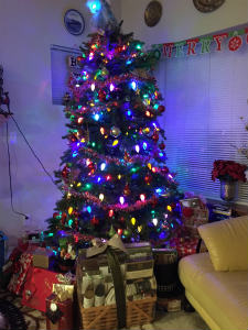 11月からクリスマスの飾り付けがされていました。大きなクリスマスツリーの下にたくさんのプレゼントが並べられます。みんなでプレゼントを交換しました。