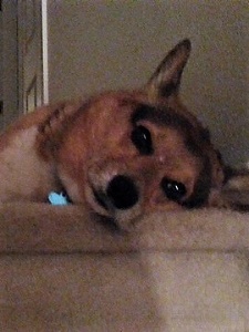 Tucker はコーギーのオスです。コーギーにしては大きく、肥満体型だったので、エサにグリンピースを混ぜたグリンピースダイエットをしていました。Rocky の先輩犬だったので、Rocky が悪いことをするといつも叱っているように見えました。Tucker はホストファーザーのことが大好きで、いつも扉の前で彼の帰りを待っていたり、くっついて回っていたりしていました。ボール遊びのとき、ちゃんとボールをくわえて持ってきて、投げてくれるのを座って待っている姿がとても健気でかわいかったです。 |