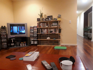 二階のリビング 家には、綺麗で大きいリビングが各階にありました。DVDもたくさんありました。 |