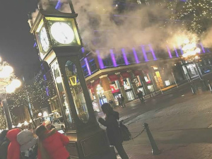 冬休みの旅行2 2泊3日でカナダにも足を運びました。シアトルから、バスで5時間ぐらいでカナダのバンクーバーに到着しました。離島である日本では体験することができない、車で国境を横断する経験をし、とても新鮮でした。そこでは、有名な蒸気時計やバンクーバーオリンピックの聖火台を見たり、キャピラノつり橋を渡ったりしました。また、地下鉄や電車、バスを利用して、バンクーバーの人々はシアトルの人たちとは少し雰囲気が違うなと感じました。