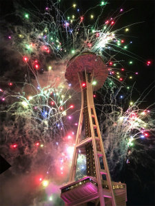 シアトルにあるスペースニードルで年越しのカウントダウンとともに花火があがります。新潟花火とは違って立ち入り禁止区域が狭く、とても近くで花火が放たれてとても迫力がありました。たくさんの人がその場所に集まり、夜中とは思えないほどの盛り上がりでした。また、日本ではしんみりと正月を迎えることが多いと思いますが、アメリカではとても華やかな年越しに感じました。さらに、私にとって冬の花火は初めてでしたし、正月料理が特になく、元旦の朝ごはんもシリアルだけという正月太りが一切ない生活という点でもアメリカらしさを感じました。 |