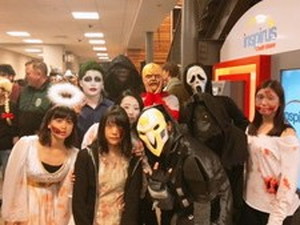 アメリカに着いて少し経つと、スーパーマーケット等のいろんな店にたくさんのカボチャやハロウィングッズが多く並びます。パンプキンパッチと言ってカボチャしか置いていない畑まであり、イベントが近づくとアメリカ中がハロウィンムードになることに驚きました。日本ではあまり盛大にハロウィンパーティーをしないので、それらを見ると本場のハロウィンがとても待ち遠しくなります。レベル2の授業でジャック・オー・ランタンを作りました。カボチャがとても大きかったので、くりぬいたり、種を取り出すことが大変でしたが、初めて作ったので、とても楽しかったし、キャンドルを入れるととても綺麗で、癒されました。 また、キャンパスのイベントでハロウィン・パーティーがあります。みんなそれぞれ自分で買った衣装を着て参加しました。日本ではとても可愛い衣装が主流ですが、本場はとても怖い衣装を着るのが普通です。服屋に行けば、大体ハロウィン・コスチュームを売っていましたが、怖い衣装を想像すると中々決めることができずに、とても迷いました。どのようにして怖くするかもとても迷いましたが、赤い液体を衣装に付けたり、顔に初めて傷メイクをして怖さを更に出すことに工夫しました。 ハロウィン当日は先生がお菓子をくれたり、家ではマザーの友達とStephanieが来ていて、一緒にご飯を食べました。家の外もハロウィン仕様になっていて、怖い人形やカボチャ、大きい蜘蛛の巣などがあり、最初見たときは少し驚きました。仮装して、”Trick or Treat”と言いながらお菓子をもらいに来る子供もたくさんいて、本場のハロウィンを経験できてとても楽しかったです。 |