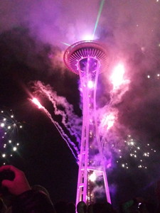 12月31日に、年越しでシアトルのシンボル、スペースニードルに行ってきました。大晦日はアメリカは特別な感じはなく、マザーと2人でした。24時になる時にスペースニードルのすぐ下で花火があがると聞いていたので、いい席で見るために夜の7時半から場所取りのために外で待っていました。時間なんてすぐに過ぎるだろうと思っていましたが、5時間外で待つのはとても寒くしんどかったです。花火は日本とはまた違った独特な雰囲気の中打ち上げられていて、しかもこんなに近くで花火を見たことがなかったので、とても興奮しました。 |
