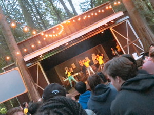 シアトルトリップから2日後、新入生と更に仲を深めるために1泊2日のオーバーナイト・トリップが行われます。これも自由参加ですが、とても楽しいので、行くことをお勧めします。日中は、乗馬やロープ、アーチェリーなどのアクティビティをし、夜になると全員でダンスやキャンプファイヤー、障害物リレーなどのアクティビティをします。ダンスはクラブみたいな感じで、とても盛り上がります。夜中までダンスをしたり映画を見たりと、好きなことをして楽しんでいました。シアトルトリップよりも更にたくさん友達を作ることができます。 |