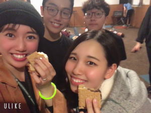 1泊2日のキャンプをしました。カヌー、乗馬、アーチェリーなど自分がしたいと思ったアクティビティをすることができます。夜中の12時くらいまでダンスや映画を見て楽しみました。ダンスはクラブのような感じでペンライトを振って踊り、みんなのテンションが高くて、とても楽しかったです。 |