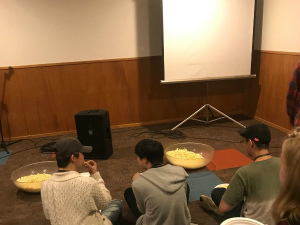 ポップコーンを食べながらみんなで映画鑑賞 |