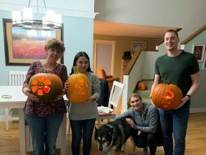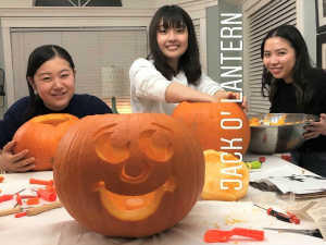 私のホストファミリーの家で初めてのパンプキンカービングをしました |
