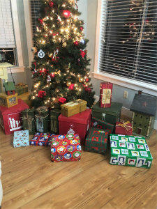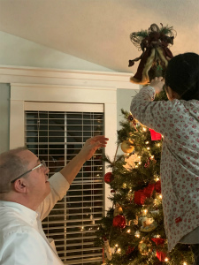 ホストファミリーとクリスマスツリーの飾りつけをしました |