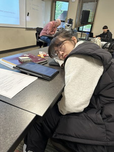 | 休憩時間中の友達(夜遅くまで友達と電話しすぎた模様…) |