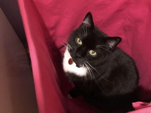 名前はLouie。12歳の猫。年を感じない、とても元気のいい猫さん。猫と暮らすことが憧れだったので、とても嬉しかったです。しかし、彼は私に一向に懐かなく、私が毎回おはようと言うと嚙んできます。おやすみと言っても噛んできます。何をしても噛まれました。とてもフワフワでやわらかいです。 |
